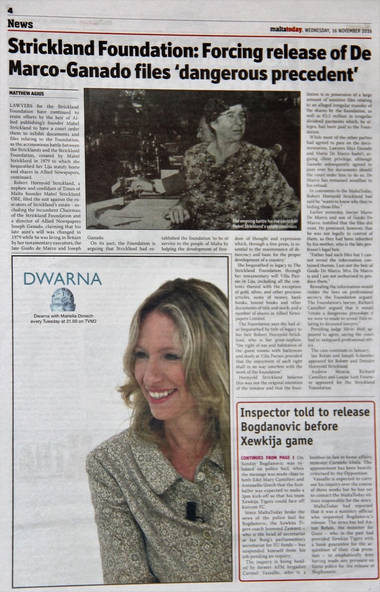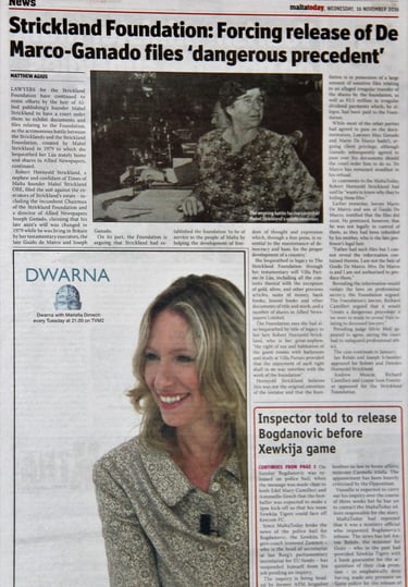Malta Today - Strickland Foundation: Forcing release of De Marco-Ganado files 'dangerous precedent'