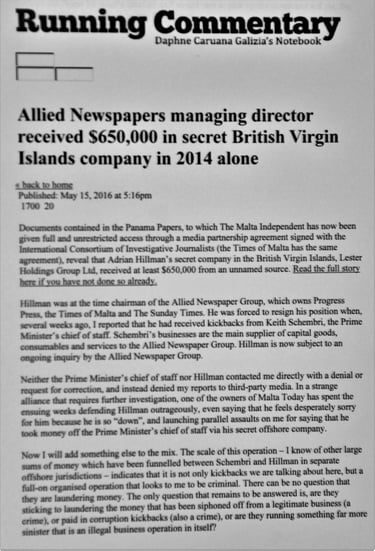 Running Commentary - How Keith Schembri, Adrian Hillman and Malcolm Scerri laundered a minimum of $2.5 million through the British Virgin Islands after March 2013