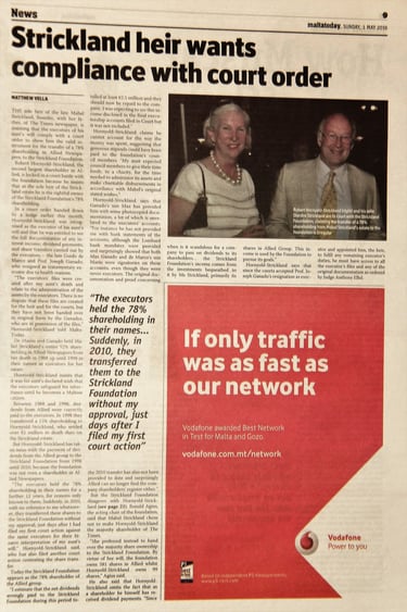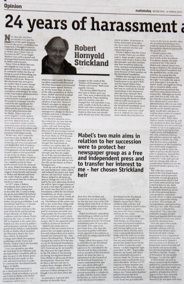 Malta Today - Strickland heir claims harassment, threats and human rights violations
