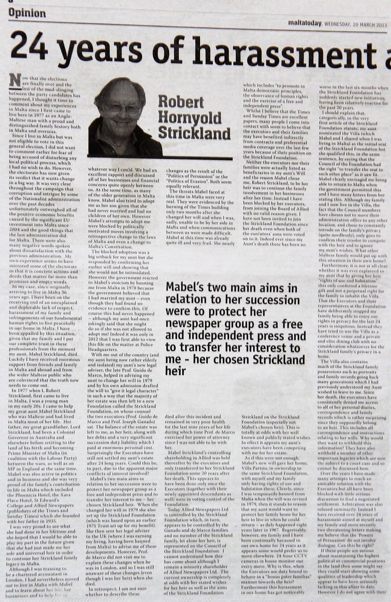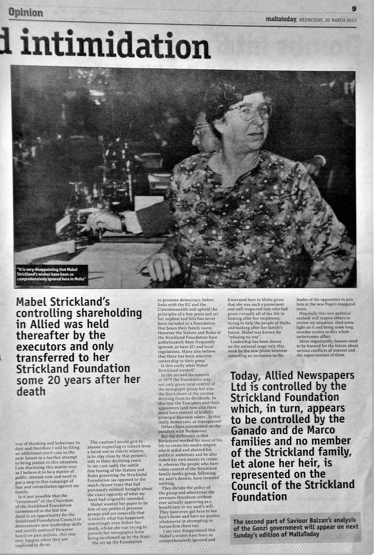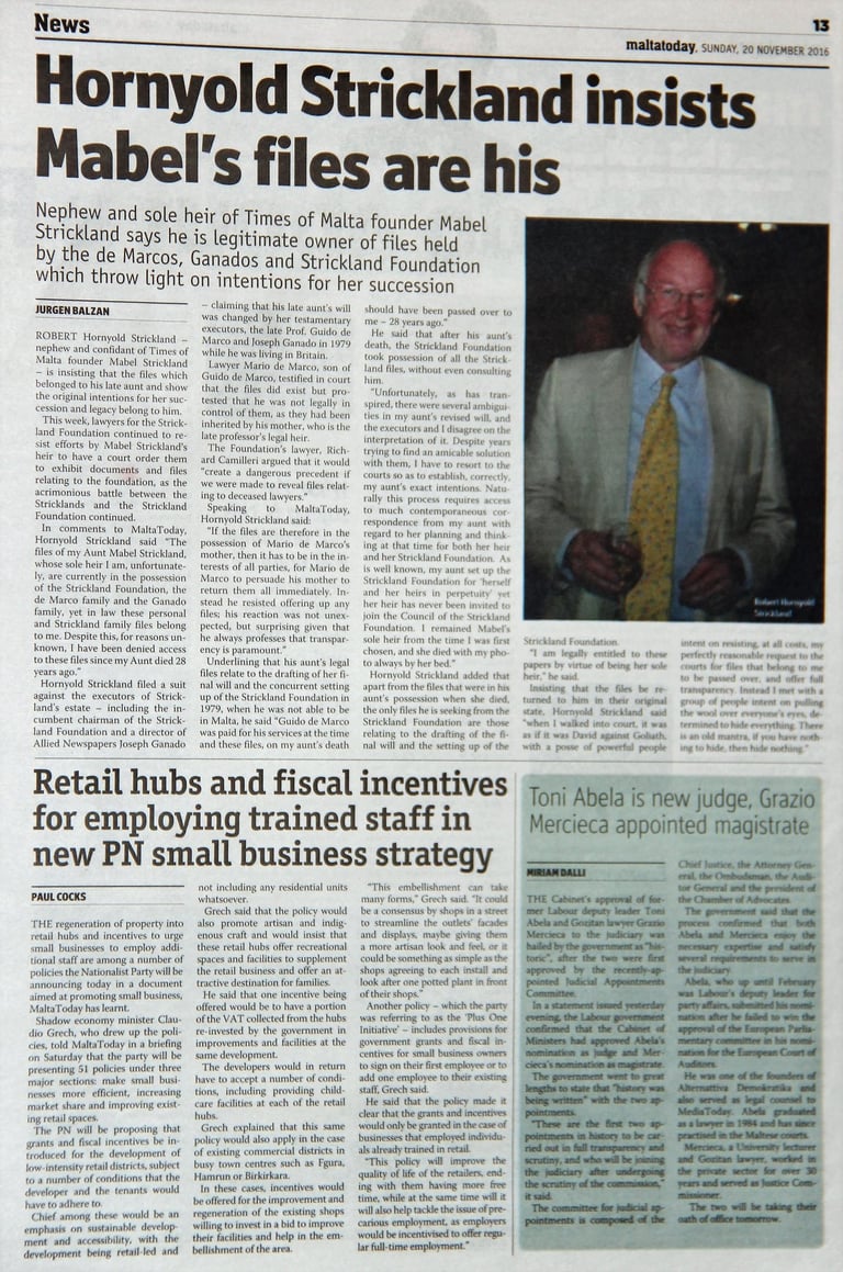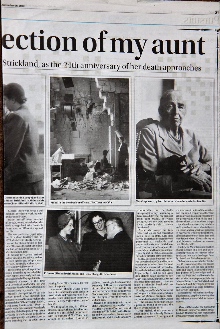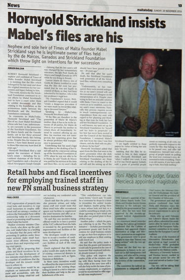 Malta Today - Times of Malta founder's nephew insists Mabel Strickland files are his