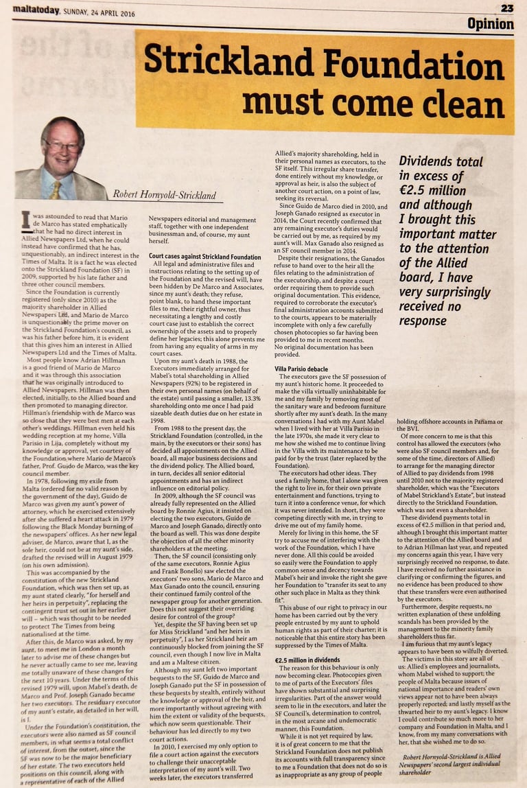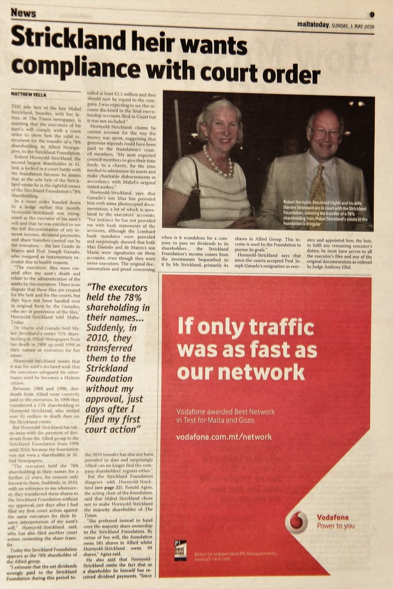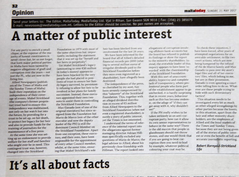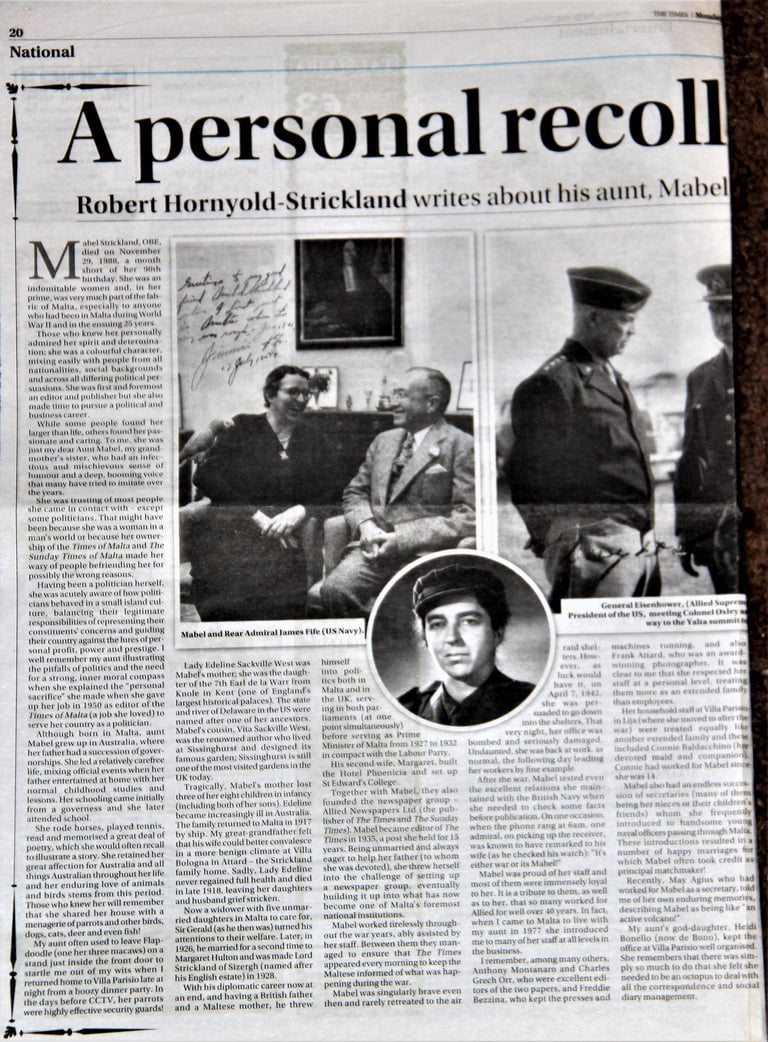 Malta Today - Times of Malta founder's nephew insists Mabel Strickland files are his