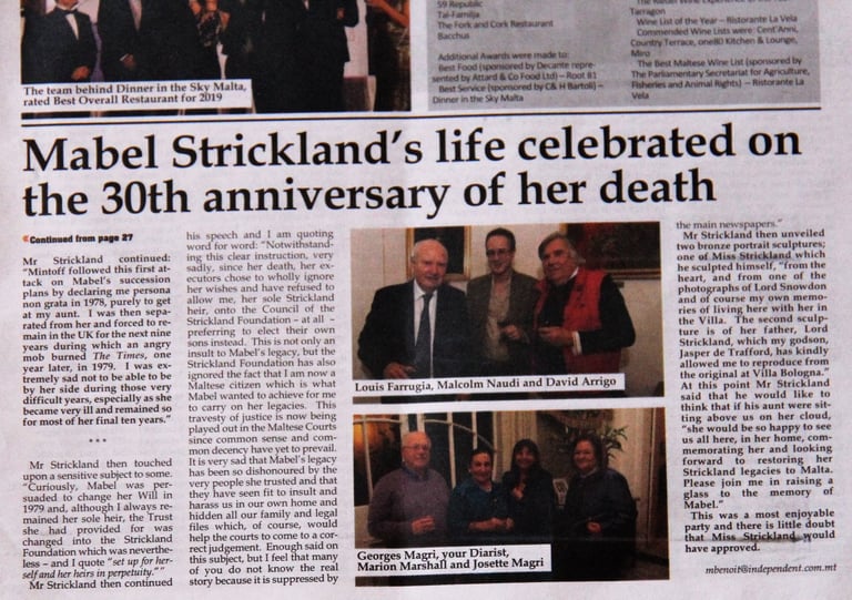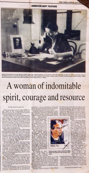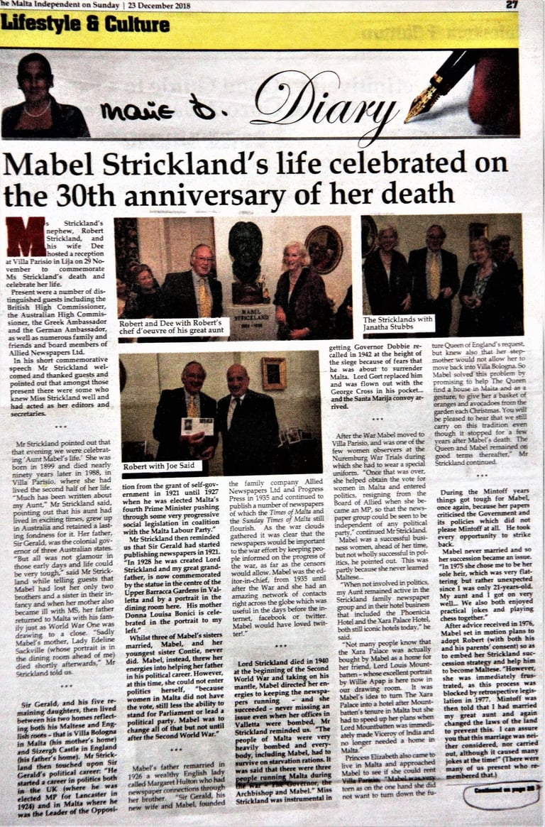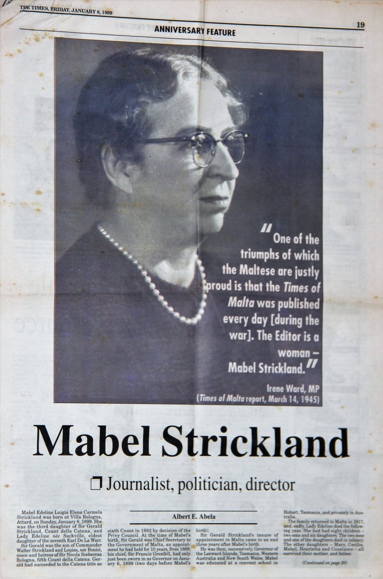The Malta Independent on Sunday - Mabel Strickland’s life celebrated on the 30th anniversary of her death