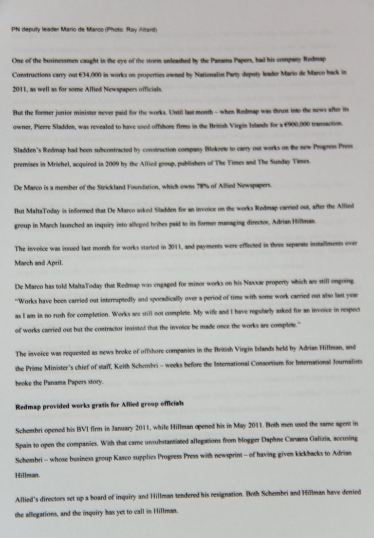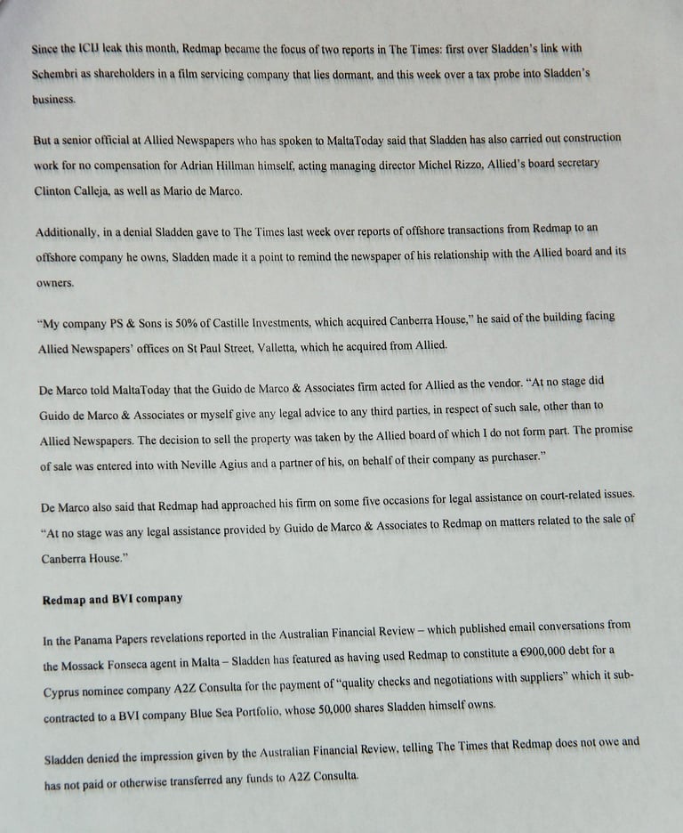 Malta Today - After Hillman resigned, De Marco paid Sladden bill for 2011 works